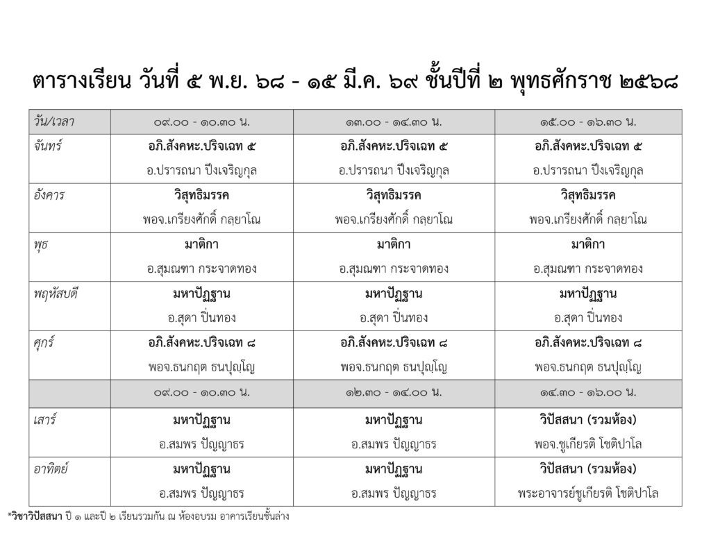 ตั้งแต่วันที่ 5 พฤศจิกายน พ.ศ. 2568 ถึง 15 มีนาคม พ.ศ. 2569 **หมายเหตุ ผู้สนใจสามารถเข้าเรียนได้ตามอัธยาศัย